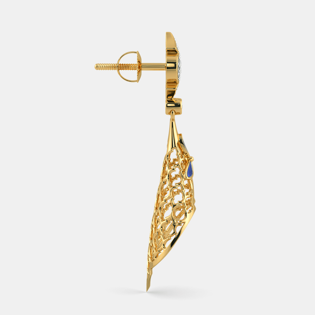 These silver ornate drop earrings are designed to make an elegant statement through their refined silhouette and intricate craftsmanship. The elongated drop design features a beautifully sculpted openwork pattern that creates depth and movement, while the polished silver finish enhances the brilliance of the form. Accented with sparkling diamonds at the top and along the delicate contours, these earrings reflect light gracefully, offering a luxurious yet balanced presence suitable for both formal occasions and elevated everyday wear.
