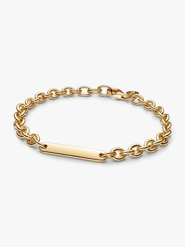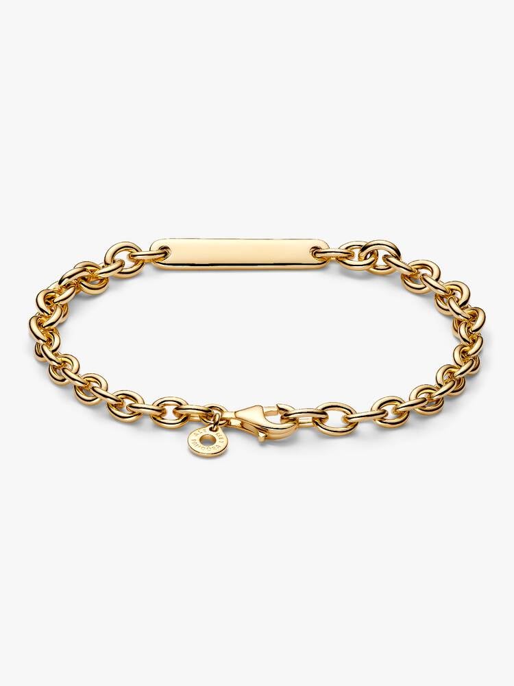 The polished silver surface delivers a soft luminous shine, while the central ID plate adds a clean and elegant focal detail that enhances the bracelet’s classic character