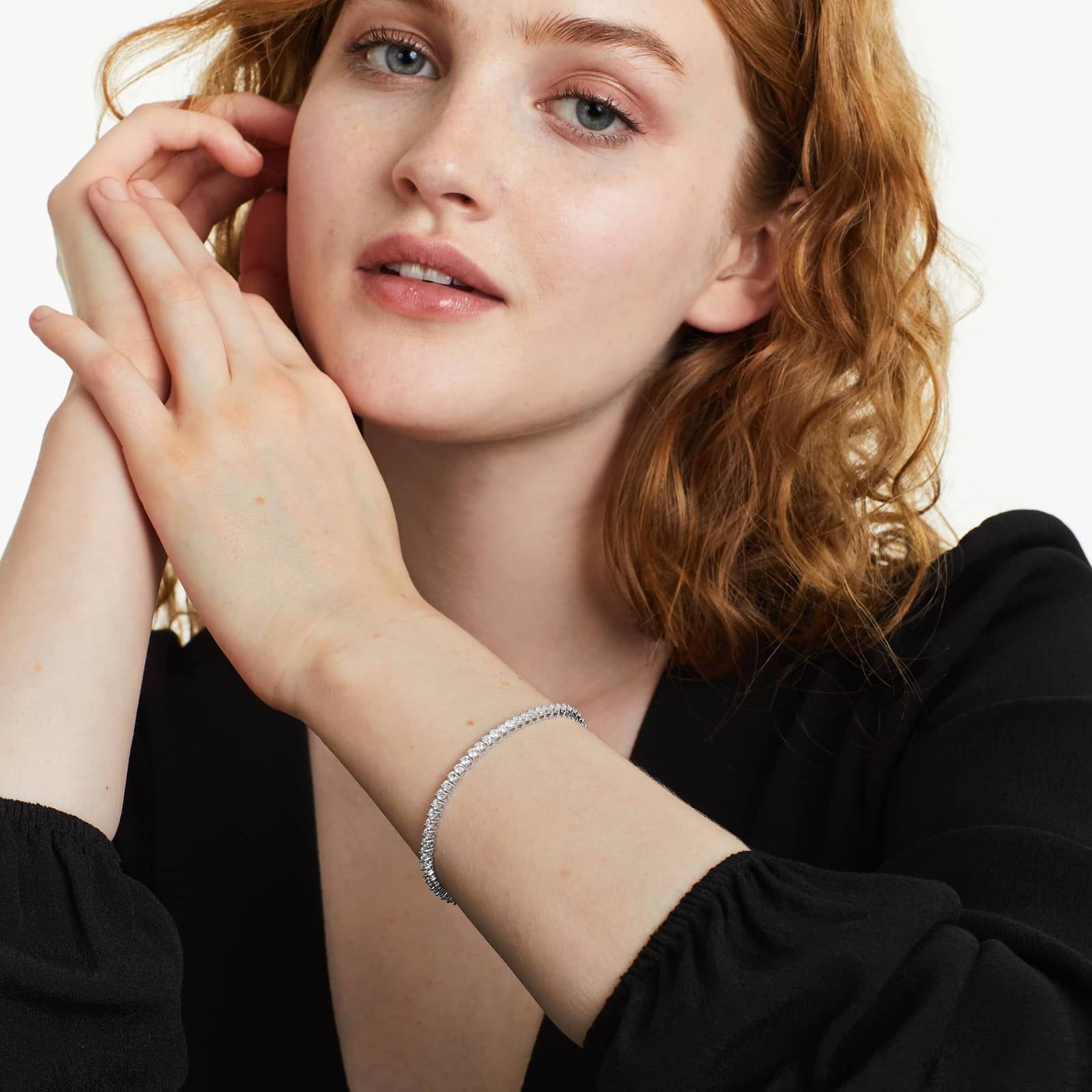 The slender polished design rests comfortably against the wrist with an understated brilliance that enhances both everyday style and meaningful moments. It brings a gentle rhythm of sparkle and elegance, creating a piece that feels luxurious yet naturally expressive.