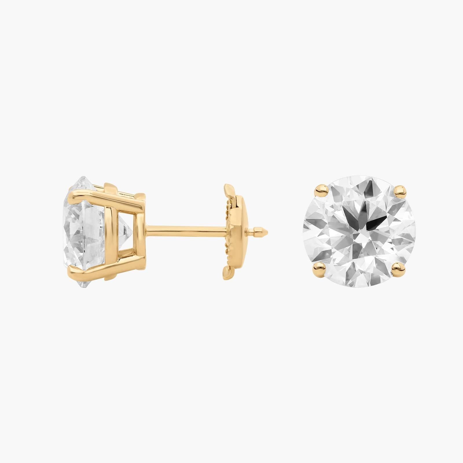 Elegant Round Diamond Stud Earrings in Yellow Gold with Push Back Closure