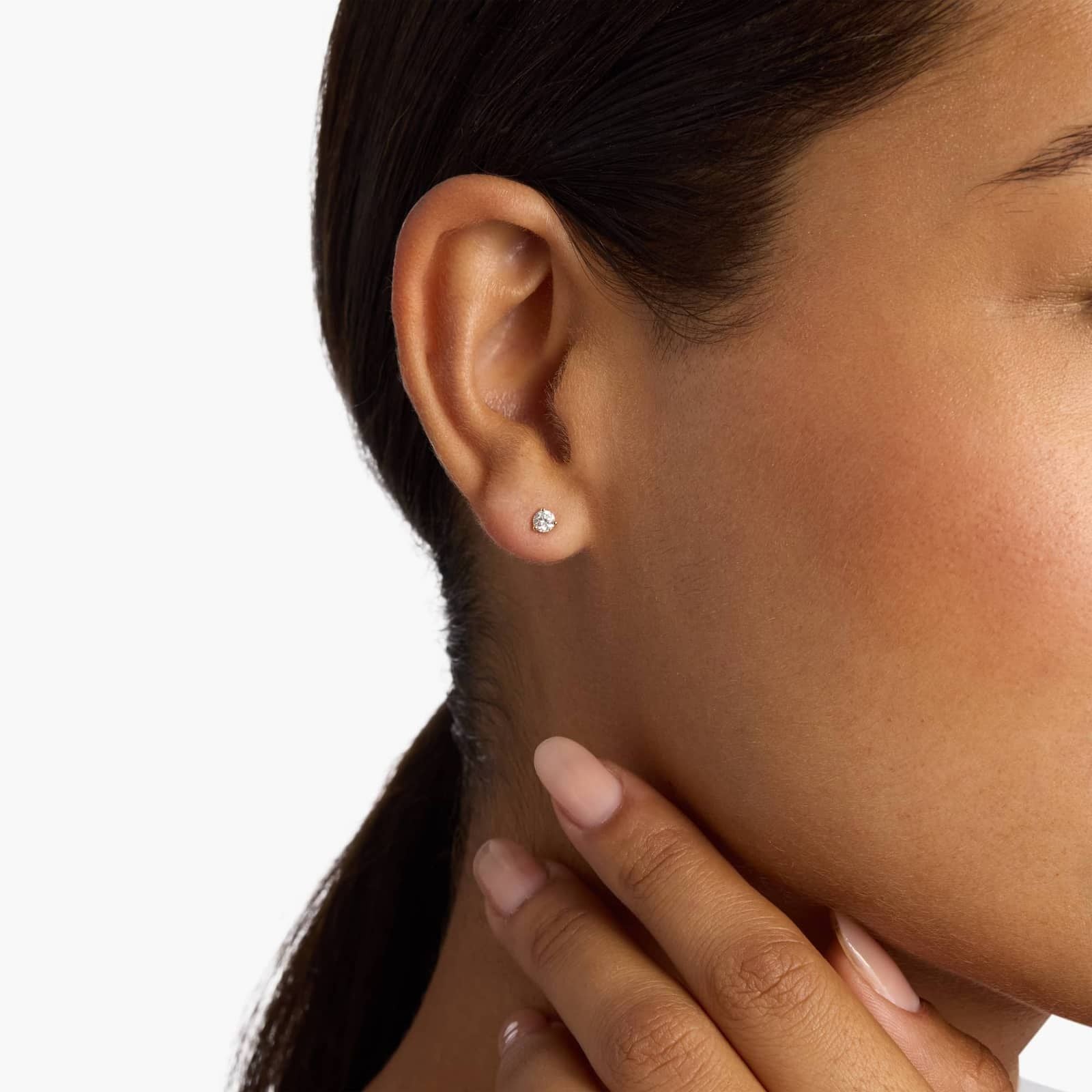 Petite Round Diamond Solitaire Stud Earrings in Yellow Gold