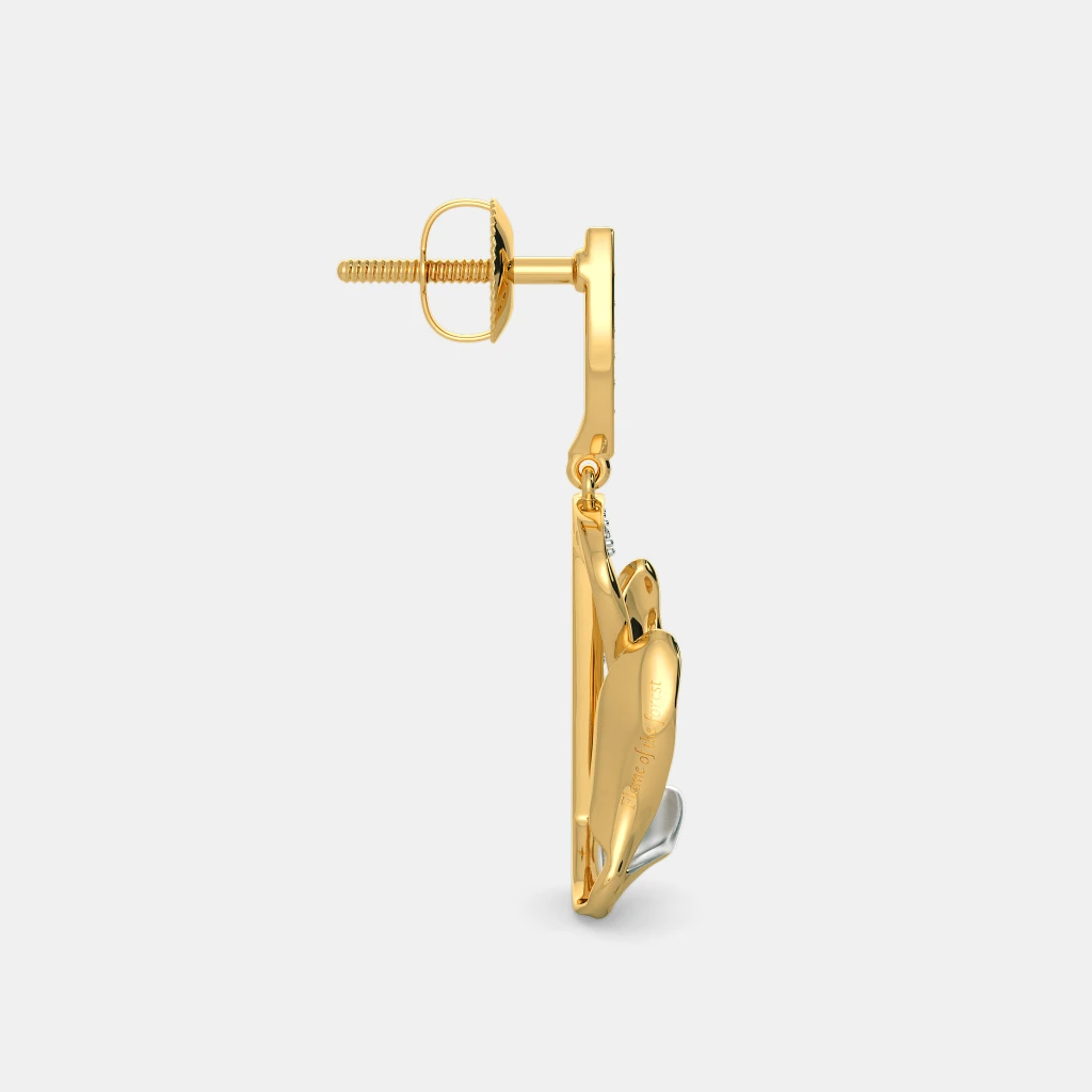 These silver abstract diamond drop earrings showcase a bold artistic silhouette defined by fluid sculpted forms and refined geometric balance. The elongated drop design features softly curved silver elements that intertwine gracefully within an open structured frame, creating depth movement and a contemporary sense of elegance. Delicate diamond detailing traces the outer contours, adding refined sparkle that enhances the sculptural flow without overpowering the design. The polished silver finish reflects light beautifully, giving the earrings a luminous presence that feels modern yet timeless.